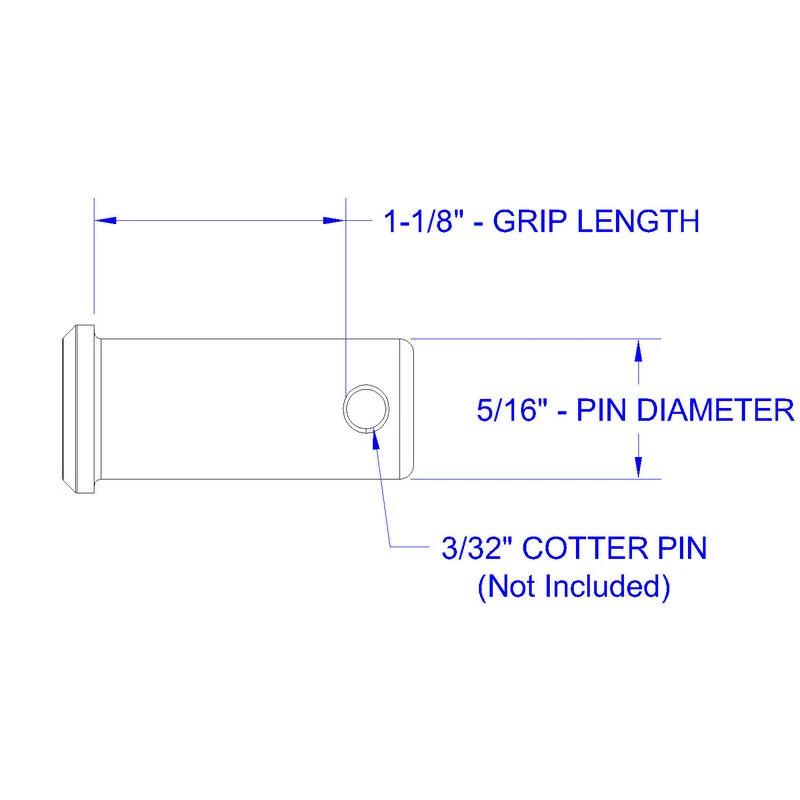 Hayn clevis pin, 5/16″ dia. with a grip length of 1 1/8″. Hayn clevis pins are manufactured from marine-grade corrosion-resistant 316 grade stainless steel. The CP516118 clevis pin utilizes a 3/32โ X 3/4โ cotter pin for retention (sold separately).