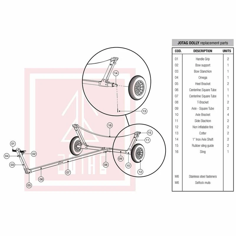 JOTAG Replacement Parts for Sunfish Class Sailboat Dolly