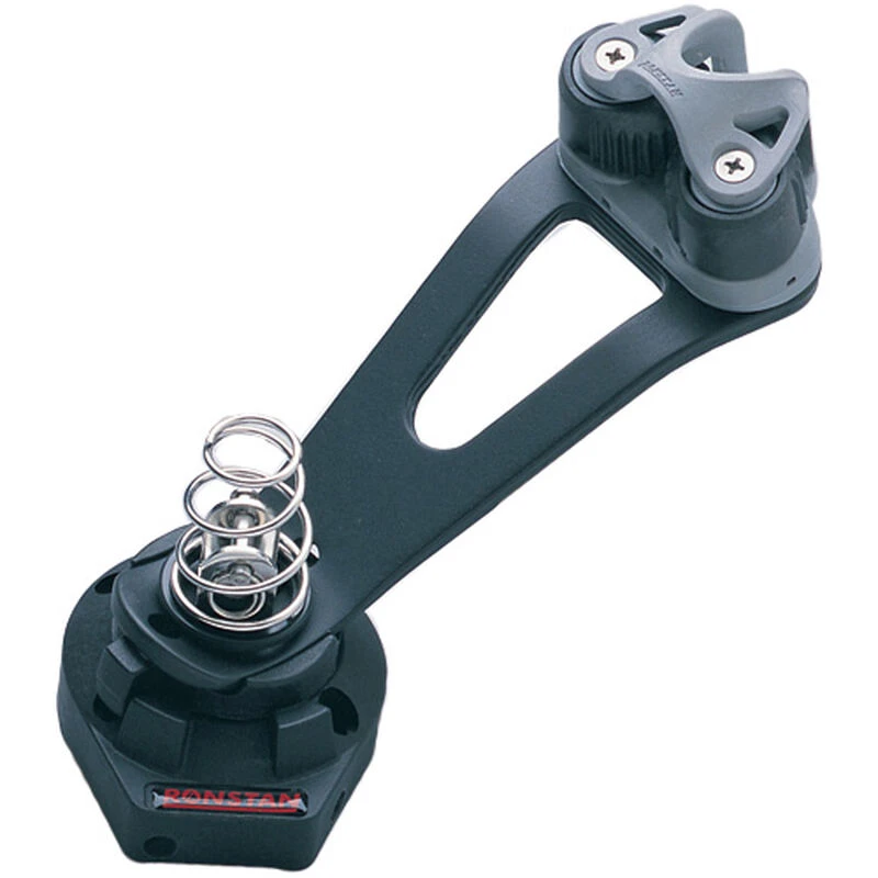 Twin bearing races provide movement through either 260 degrees or 360 degrees. Ratchet-controlled rotation by adjustable-pressure screw. Kit includes C-Cleat, Fast Track fairlead, wedge kit and spring.