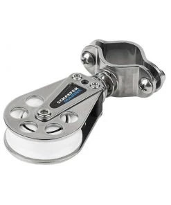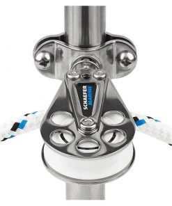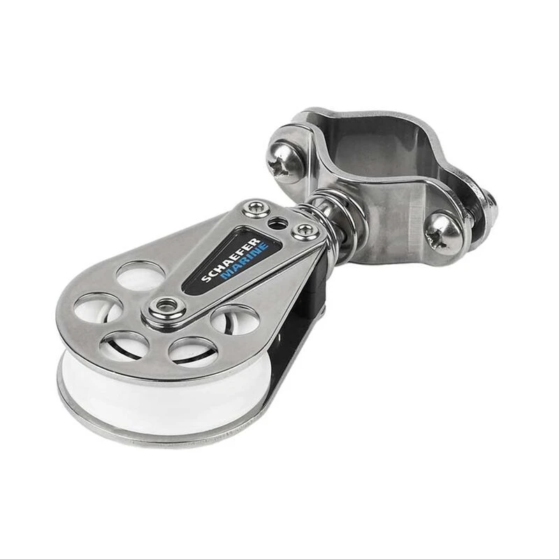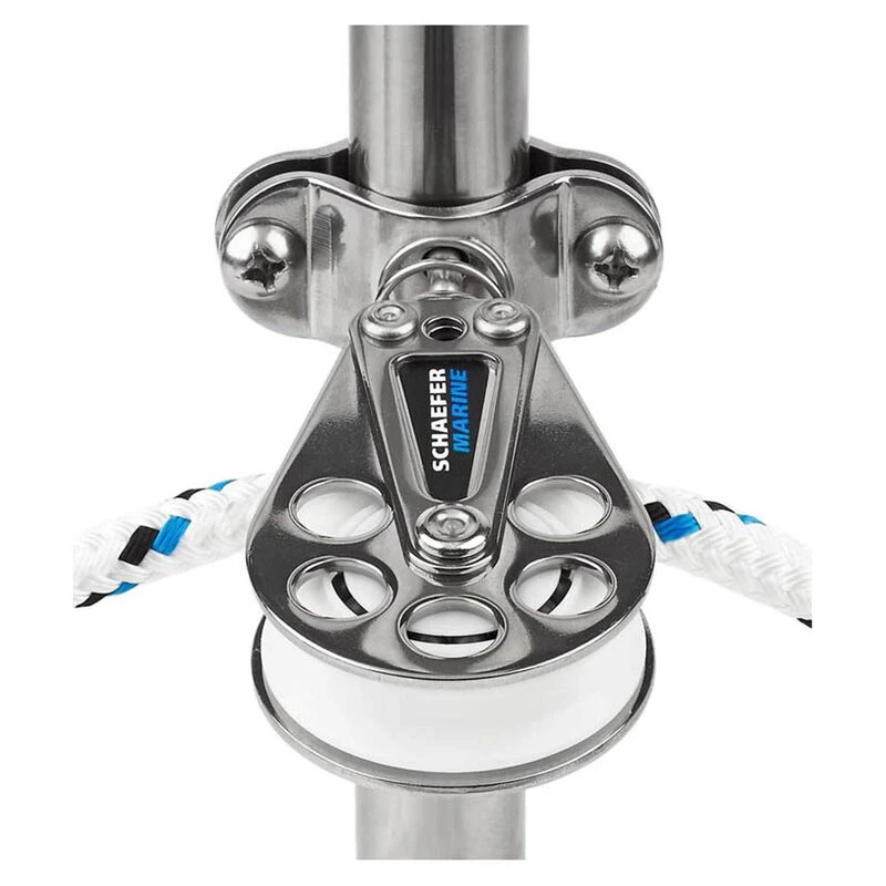 This block leads the furling line outside your stanchions to keep furling lines out of the way. Slips over stanchions and secures by a simple set screw. Low-friction ball-bearing races.
