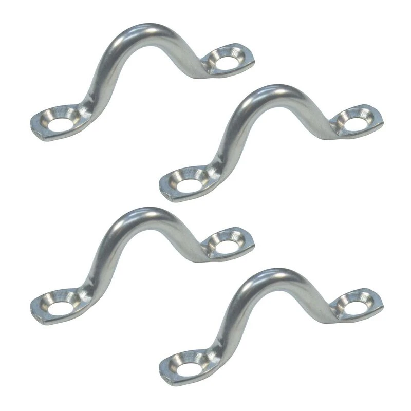 Eye straps made of stamped stainless steel with a polished finish. These are high quality precision fittings machined from 316 stainless steel stock for strength and long lasting durability.